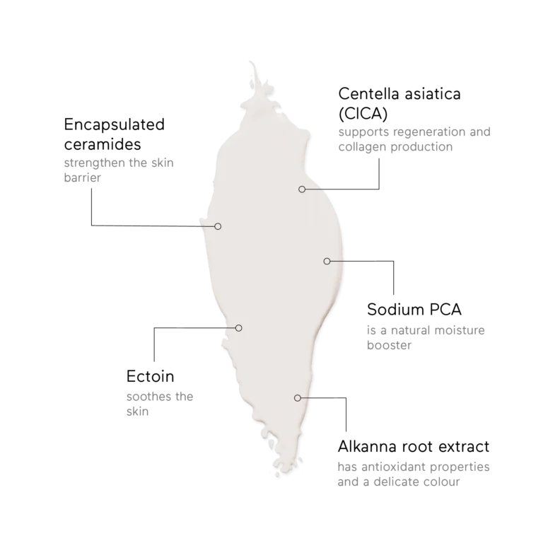 Mit reichhaltigen Wirkstoffen aus der Face-Care-Welt wird die Haut tiefgehend genährt, regeneriert und spürbar geschmeidig. Hochwertige Pflanzenöle verwöhnen mit seidiger Weichheit, während Sodium PCA Feuchtigkeit anzieht, speichert und Austrocknung effektiv vorbeugt. Die samtige, zart roséfarbene Körpermilch sorgt zudem für einen kleinen, sinnlichen Luxusmoment im Alltag.